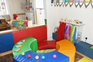 The Ladybirds occupy three bright and airy rooms within the ground floor of the main house. This includes the main room with access to the astro turf outdoor area, a sensory/ sleep room and a messy/meal room.